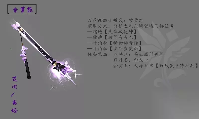 之前给大家带来了十二门派的橙武外观大全,但众所周知剑三目前一共十三个门派,那么最后剩下的万花门派橙武是什么样的呢?今天小编就给大家介绍一下万花的橙武吧! 全门派各品级橙武外观大全 少林 七秀 纯阳 万花 唐门 五毒 明教 丐帮 天策 藏剑 苍云 霸刀 长歌 70级橙武