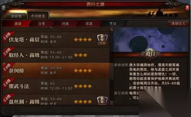 流程介绍: 进入地图以后,你会碰到唐太宗,点击唐太宗让他跟你走,一路没难度,清小怪即可。继续往前走,走到桥的中级,会有一个NPC叫天将之魂。这个时候,奈何桥副本才刚刚开始。 天将之魂可以召唤出:天兵、盾兵、弓手和旗手。这些召唤出来的帮手是可以升级的,最多只能召唤5个。我建议这些帮手的选择是2哥旗手和3和盾兵。 当你打到一定的第6波的时候会刷出第一波宝箱,这个开出来的是绑银。宝箱的数量是随着波数的增加而增加的。一般通关了的话会有10W绑银,加2个还是3个高级福源袋,还有几个真言残片箱子。打这些关卡的时候记得升级你的NPC。选择最下面的2个BUFF,第一个BUFF,50生死令(攻击防御增加100%)持续60秒。第2个Buff,100生死令(攻击防御增加300%)持续60秒。
