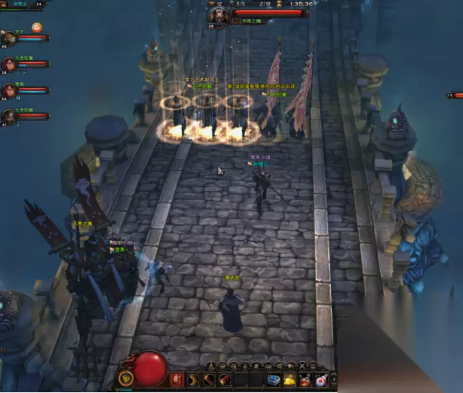 当满屏的怪的时候,你可以选择开启这2个BUFF。需要注意的是,这个2个BUFF最好和老牛的狂暴领域以及神将的插剑一起开。你懂得,伤害最大化。 当然要是队伍里没有这些职业的话,建议选择召唤火德天师据说很牛逼。这个NPC是AOE,伤害十分的高,由于我队里没召唤过所有我也截不到图。 这途中唐太宗处还会刷出一些NPC过来偷袭唐太宗,大家要注意。唐太宗死了,这个活动就结束了,一定要注意。 到了一定的波数会就会出BOSS,分别是残酷牛头和残酷马面,有34条血。 需要注意的是当你打到30波以后的时候,这个BOSS的攻击是可以秒人,一不小心就被秒了,大家要注意。