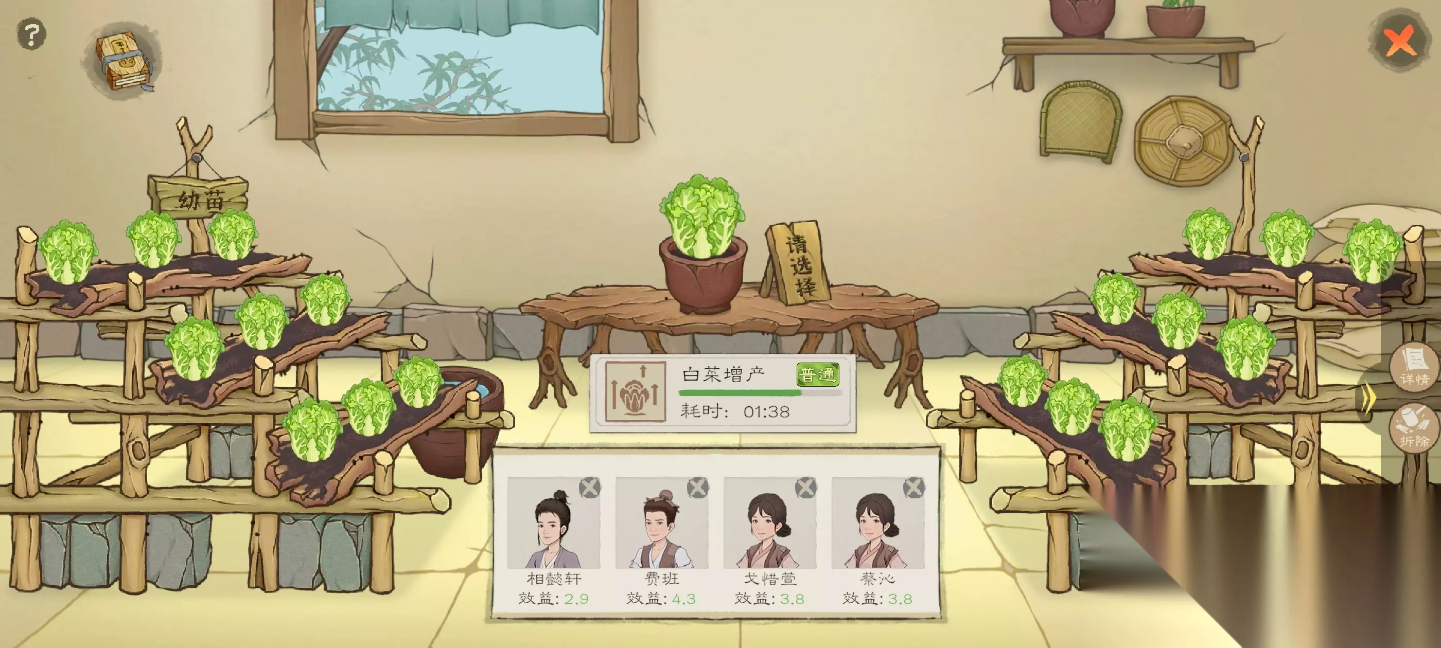 你们看像我这里,野果和野菜集中一起的,因为两个都是食物,而且得像是野草和甘草之类的,分开放集中在一起 这主要还是为扩宽田地面积