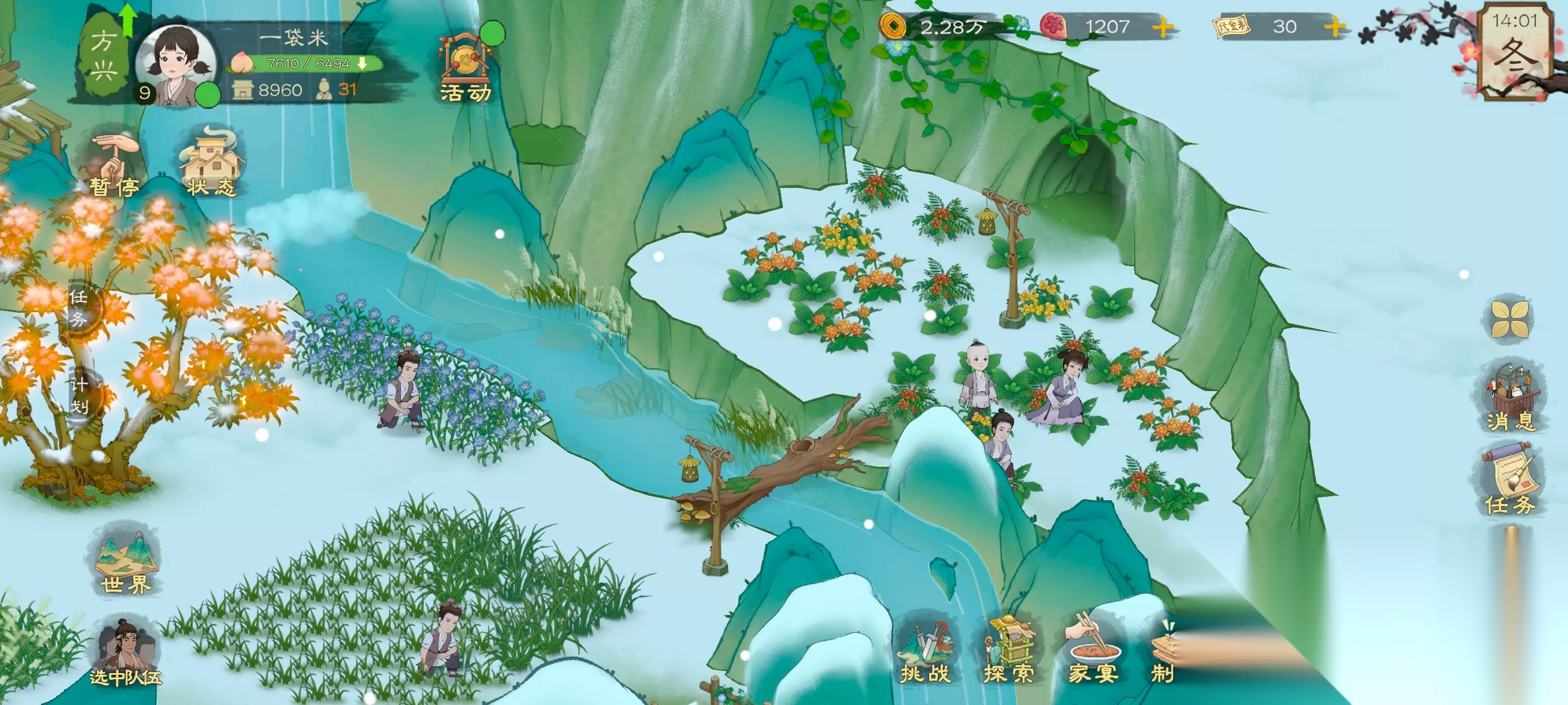 ps :在商人那买点种子啥的,像是蔬菜大豆种子进行种植,增加食物种类的多样性,因为你食物种类样性越多,丰盛度也会越高,能增加的经验值啥的也更高