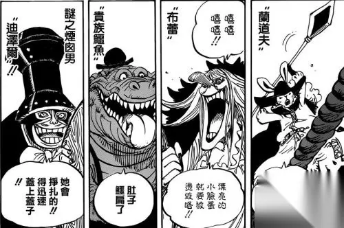 海贼王漫画849话 【客室——“文斯莫克亲族”】 4治:零玖呢? 2治:谁知道呢,出去了吧 4治:啊对了,比起这个,父上,结婚以后两个人到底住哪啊? 加治:那当然是“杰尔马”了!不把那个“女孩”当做人质的话谁知道今后会提出怎样的要求……对方可是“海贼”啊 2治:对方也应该想要人质的吧? 1治:别说傻话了2治,难道3治被杀了我们会有什么动摇吗? 4治:哈哈哈哈!确实是啊 2治:真是令人开心啊!又能和3治住在一起什么的 【“镜世界”——布蕾的家】 布蕾:哎呀~~~真是做好了最棒的料理了啊,大家都饿扁了吧? ???:饿扁啦饿扁啦 布蕾:把绳子切了吧! 加洛特:呀——不要啊——别吃我啊! 乔巴:……!! 乔巴:(布蕾她自掘坟墓了!那是被布蕾的能力照过以后投影出来的变成加洛特样子的青蛙啊!) 乔巴:(真正的加洛特!藏在阁楼呢!)