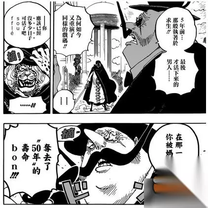 再说说布鲁克和佩德罗。其实之前也已经说过了,布鲁克的果实能力和身体现在的状态看起来分别克制大妈和奶昔大人这两个强敌,对方用果实能力的话对布鲁克应该是一点办法都没有,但相信四皇及手下最高干部的体术不会弱,布鲁克恐怕只有逃走的份。 佩德罗这边,既然以前跟蛋蛋男爵似乎是平手,那现在可能一样是平手。 只有一点令猫叔特别在意:佩德罗被抽走的50年寿命哪里去了? 大妈抽出来的魂似乎都可以通过加在食物上吃掉,但毕竟也有那么一些是用来制造了霍米兹,而且霍米兹与霍米兹之间的地位也不平等,兰道夫、烟囱男和贵族鳄鱼明显看上去比一般的棋子士兵要高级一些。 如果参考莫利亚当时影子僵尸的等级,大妈这边是不是也是用比较强大的人的生命抽出来制造厉害一些的霍米兹? 所以佩德罗的寿命搞不好还在某个高级霍米兹的身上。再次参考莫利亚那时的情况,这个寿命很可能还有收回来的机会。 【海贼王漫画849话情报回顾】镜之国里的乔老大