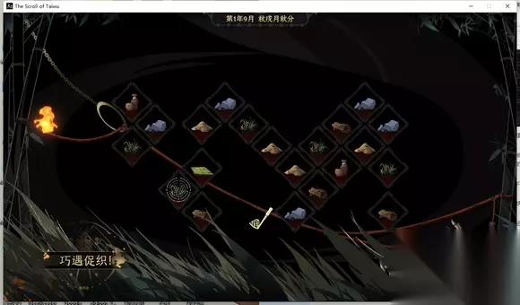 选择与你相同的立场,比如我的人物是仁善,那么我选择仁善选项,人物的心情值就会上升。反之则会下降。当人物心情值极低的时候,更容易被相枢入魔,修炼功法也更可能失败、紊乱。 但不同立场也有不同的特殊作用,比如仁善地拒绝别人的要求,他们的好感度不会降低;比如唯我地命令其他人为你卖命,那么他们就有可能成为你的同道;所以必要时,你也可以选择立场不同的选项,这些你会在之后的游戏中慢慢探索。 完成小猴子任务后,你会得到5个野果。野果(以及其他食物、酒类)的作用,你可以在人物-持有界面查看,有的副本(尤其是战斗副本),要你必须提交食物道具才能进入。 接下来,继续向促织地点前进。促织奇遇和其他奇遇一样,需要你移动到所在地块,并且点击上边的符号,才能触发。远距离点击无法触发。 你可以看到,三个促织地点,只有一个藏有促织。如果选择错误地点,促织就会逃跑,逃跑后它藏身在2个地块中,如果依然错误,它只会刷新在一个地块中。也就是说,最倒霉的情况下,需要你移动三次才能捉到(比如我)。