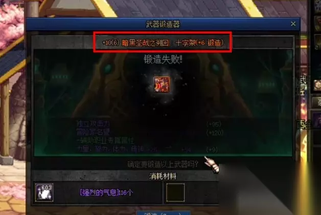 dnf锻造成功率是多少 锻造1级成功率100% 锻造2级成功率50% 锻造3级成功率50% 锻造4级成功率30% 锻造5级成功率30% 锻造6级成功率15% 锻造7级成功率15% 锻造8级成功率5% dnf锻造失败会碎吗