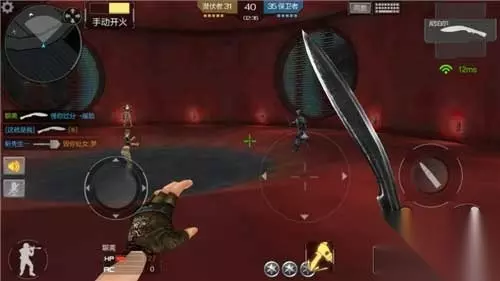 地图除了这一点其他的并没有什么改变,上下两层都很适合拼刀,但是在端游比较常见的一幕:下层站着一群人守着上面的人主动跳下来的事情在手游里却并没有出现。