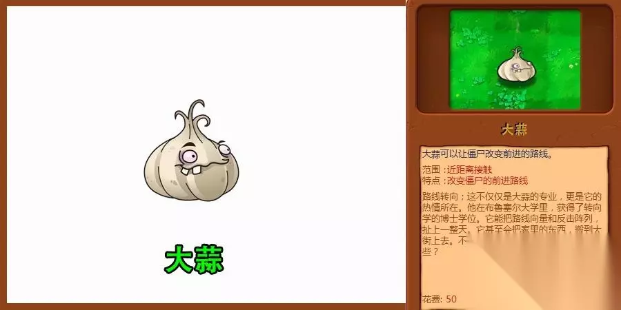 大蒜是一种特殊植物,既不是攻击植物,也不是防御植物,而它却有能让僵尸碰都不敢碰的能力,当僵尸看到这种植物都会避而远之。宁愿顶着伤害去改道而行也不愿多待一刻。 能让僵尸有这样的想法,全是因为大蒜身上有一种能让僵尸闻到就想吐的味道。而大蒜也成为了克制僵尸的神器。假如僵尸有意识,看到庄园全部种植大蒜的时候,估计要逃跑了,真要入侵的话,估计光吐都吐到死了 以上就是《植物大战僵尸》中最强的五种防御植物,它们各有各的特点和优势,玩家可以根据自己的游戏风格和需求选择合适的植物来进行防御。不同的植物搭配和布局也会对游戏结果产生影响,因此玩家需要不断尝试和探索,才能找到最适合自己的防御策略。希望本文对各位玩家有所帮助,祝大家游戏愉快!