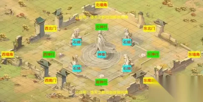 2.由于全体仙友每晚的免费行军次数有限,也就是从基地(大本营)出战的次数有限,这就要求,普通玩家只出战*强1队,氪金大佬可以出战多支强队(需要购买神墟行军令补充次数) 3.案例:一般情况下,周一晚上,活跃强力仙盟可以打到大门附近甚至占领大门(周一、周二进不去,只有周三晚上才能进内圈) 4.建议:强力活跃的仙盟肯定是抢大门,比较弱的活跃仙盟只能拿墙角(位置差,进内圈的神行距离远),佛系仙盟打任务。 四.周二晚20:00~21:00,昆仑神墟战斗开始: 建议:对于拿到门的仙盟来说,肯定是守到这个门,不要被其他仙盟偷了,强力的仙盟还可以多占领点矿,提高资源收入;对于其他没拿到门的仙盟来说,就要考虑怎么去合作、去偷袭,难度较大。 五.周三晚20:00~21:00,昆仑神墟战斗开始: 1.建议:周三晚上开始,神墟内圈开放,每个仙盟只能占领一个神行;占领门的仙盟理论上会比占领墙角的仙盟更快拿到神行,其中东北门建议拿东神行,东南门建议拿南神行,西南门建议拿西神行,西北门拿北神行(当然联盟之间可能有特殊打法,这里只是建议,但是具体问题要具体分析)