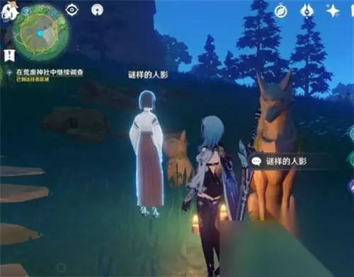 PS:每一个角色都是会挪动一次部位,会话2次之后才会到那个三个小狐狸聚集的地方 在“在荒芜神舍中不断调研”任务时,三个身影位置,分布于:山路上、神舍前、房顶上,供大家参考笔者的攻略,去游戏里面探寻。