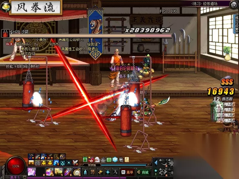 看人物左下略有一些尘土,这是追影步的效果 接八荒进行的连招输出,因为刺击接八荒会导致八荒的演出变得特别慢,可以肉眼很明显的看出来,可能是因为攻速的原因,比如X后释放领域则会明显快一些。简单说下:人物在跑动到怪物背后或X后释放八荒演出会比较快,但如果在怪背后站立一段时间释放八荒则会明显感觉到变慢了。刺击后再接八荒也是这样,原理猜测为击不吃攻速,导致后续技能也不吃攻速加成,而八荒是吃攻速的。但刺击接影戮没有明显看出来变慢,所以搞不清楚中间有什么弯弯绕绕。 总的来说,聊胜于无。 控制等级 这次更新提高了鹦鹉的控制等级,具体来说就是部分控制技能提高为“强制控制”比如影袭。 在修炼场使用沙包进行测试的时,使用影袭和二觉锁地、影戮、连舞、瞬杀、天诛过程中,沙包会有金边出现。 在修炼场使用杀人狂XXX(忘记叫啥了),使用影袭、二觉锁地、瞬杀过程中会在屏幕中间出现“强制控制”的字样,影戮则显示为“控制”字样。穿心背击表现为控制,正面破招非霸体出现控制字样,偶然出现了一次强制控制,但始终没有再现出来,可能是错觉。 更新提高了鹦鹉的控制等级,但与其他职业的竞合尚不可知,比如针对可抓取的怪(修炼场机械哥布林)释放白手二觉。 白手的二觉在抓取的过程中会使怪转向,白手二觉演出分为御剑术与万剑诀两部分。演出不知道什么原因会出现两种结果 1、御剑术演出的抓取过程中会使得怪物转向一次,怪物从背对白手转为正对。在万剑诀最后一击时,怪物再次转向,调整为背对白手(这一情况少见,原因不明),如图,为了把图砍到少于500KB删了很多帧,但关键的地方还保留,仔细看还是可以看到的。