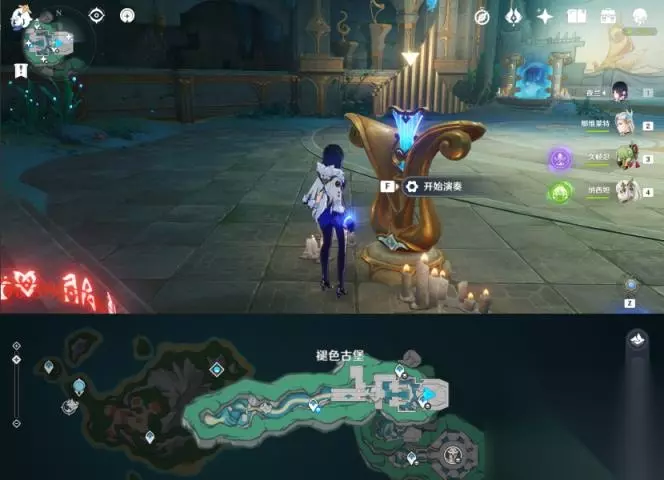 持续收集【音符泡泡】,使得壁画上的巨船法图纳号抵达终点后可以取出乐章,同时奖励华丽的宝箱*1,珍贵的宝箱*2。 注:不需要全部都接住,满足左上角的要求,一个阶段即可完成。 3、第三乐章:「赫赫君王」 位置:「安提库旧港 · 上层」