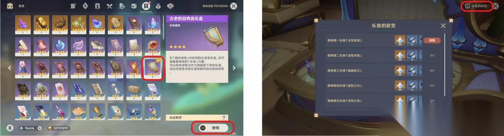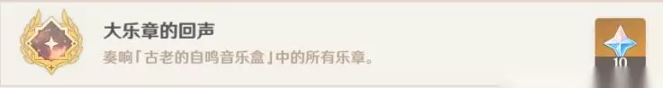 6、第六乐章:「垂泪之时」 在进行世界任务谐律上的咏叙诗·「哀悼命运之疮」中获得。 收集到所有乐章后。解锁成就:大乐章的回声。