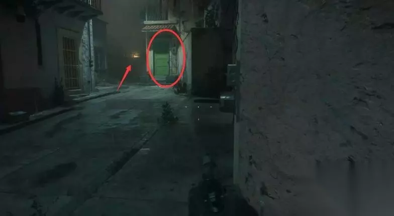 12、绿门先不要开,绕到后面去。