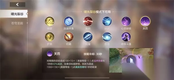 8、曙光战技 打野推荐的曙光战技只有天罚,抢龙刷野必备; 9、总结 最后总结一下,打野很多时候需要的是节奏感和时间节点的控制,还需要队友的配合意识,在没有队友配合的时候尽量把自己节奏带好,打完第一条龙能抓人就抓人,不能抓人就去反野,压制一波经济发育,毕竟这是推塔游戏!可以说打野才是曙光裂谷的核心人物,打野节奏带不起来,全图瞎逛无脑刷野抢队友经济或者队友不跟打野配合!这些都是导致拖慢游戏时间和失败的主要原因!最后总结下妇好,妇好刷野优秀满血单刷大龙!这些都是其在打野位能够占一席之地的主要原因!龙坑二技能入场大招旋风斩惩戒抢龙也是一把好手!机不可失时不再来,小伙子冲进去吧。