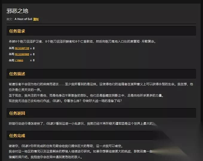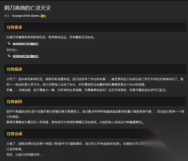 温馨提示 邪恶之地为本外任务。 封印神像为副本内护送,先共同接剃刀高地的亡灵天灾,所有人交之后再共同接封印神像,步骤一定要同步,每一步都要确认5人都已完成,不然很容易有人接不到任务,护送阶段注意NPC血量。