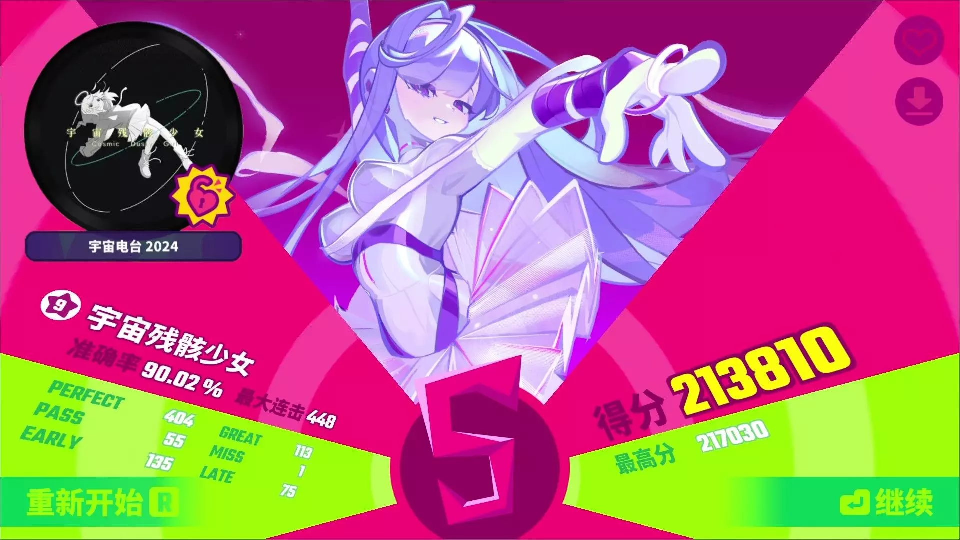 游戏名称:Phigros 曲名:Re:birth 难度:IN 15.4 BPM:196 谱面总评:15下位,除尾杀爆发外并没有过大的底力要求,但需要熟悉配置并灵…