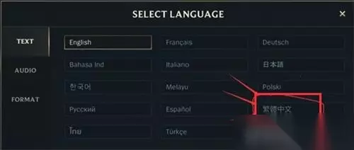 国际服的“繁体中文”是在右下角,台服的“繁体中文”在左上角,如果你这里没有这些语言选择,那就说明你的版本不够新,赶紧更新下吧。