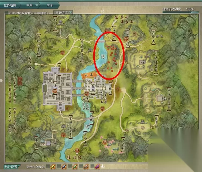 甜象草我不喜欢在苍山采【因为开阵营经常被揍】,我喜欢回主城【太原】的时候,去太原的【马草场】挖, 位置图红点: