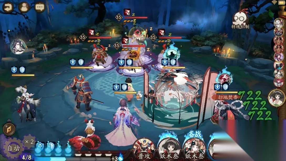 晴明:星 盾; 食梦貘:四星即可,带招财。速度在185~197,命中不低于145,一直控制人就行。满技能。 兵俑:四星即可,带火灵。速度在185~197,命中不低于150,一直控制人就行。满技能(兵俑和食梦貘还有星熊童子是所有控制类式神里面为数不多在控制的时候不会对敌方造成伤害的式神,所以建议用这三个式神作为本次秘闻的控制。); 以津真天:带针女输出套,面板1.9。六星,满技能(用泷夜叉姬会打的更快)推荐是可以单体输出也可以群体输出的式神打; 蜜桃&芥子:四星即可,速度招财,满技能,速度200 比控制快(没有蜜桃就带山免); 辉夜姬:四星即可,带涂佛,满技能,随便一套涂佛就行,涂佛可换成招财、地藏、蚌精等。没有辉夜姬用追月神或者座敷童子天井下代替,不建议熏。 3.通关攻略 在黑夜中,小怪起始生命值为零,每回合都会回复一定生命,若施放技能则会损失一定生命,当生命值回复到100%时则会离场。沉溺于美梦中的小怪们,在黑夜中,施放技能将不消耗鬼火;食梦貘阵亡时则提前结束黑夜战斗。