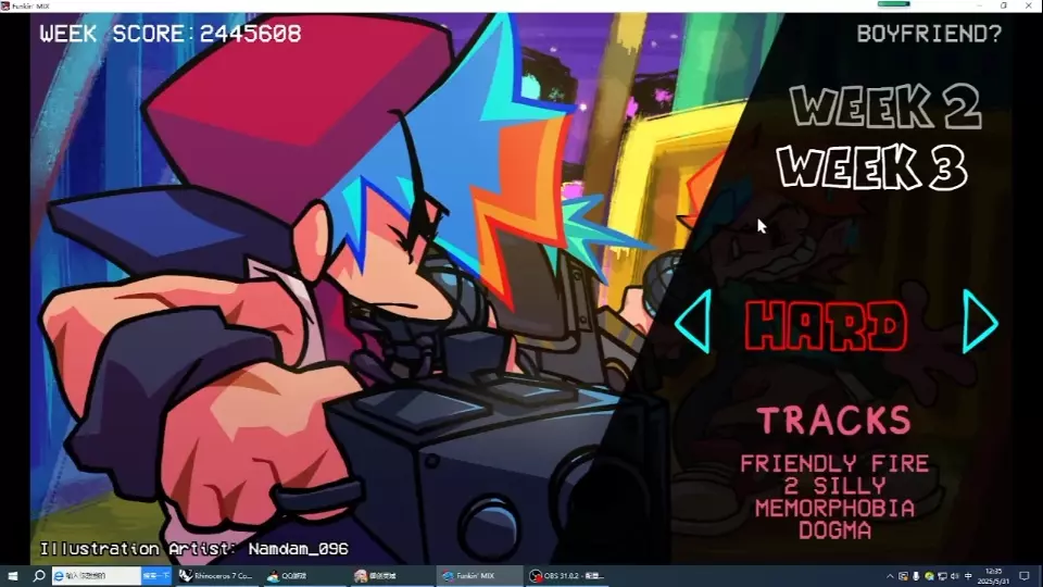 pico周打了两遍,第一遍找手感miss2个,第二遍开始录,到第四阶段开始累,所以miss5个