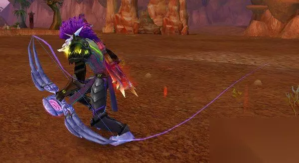 击心者 出处:黑翼之巢 勒什雷尔 可能玩家不太留意,但装备上才晓得原来这把弓的样式当属不错。犹如一条弯曲的火蛇,黑红色的样式,模型较大,射箭姿势也蛮好看。