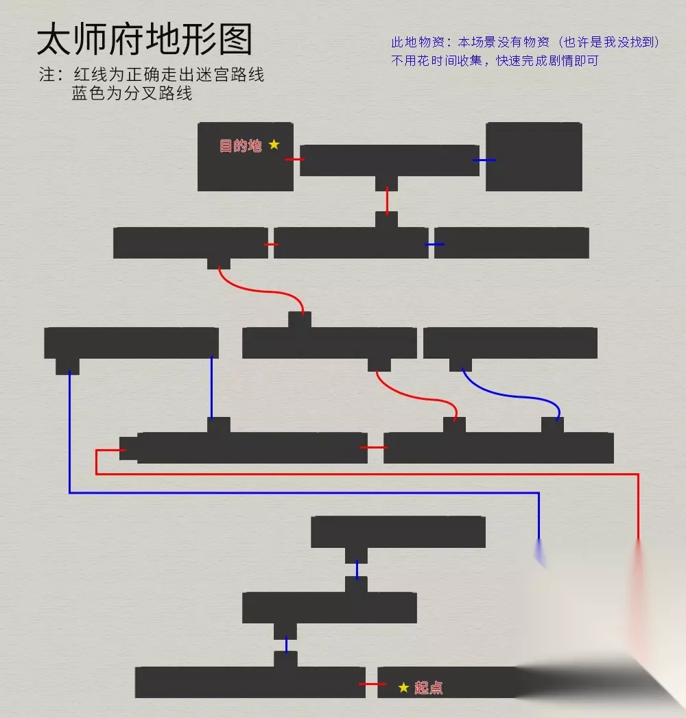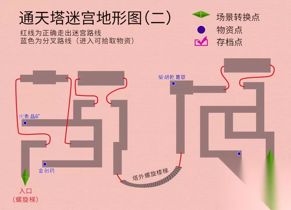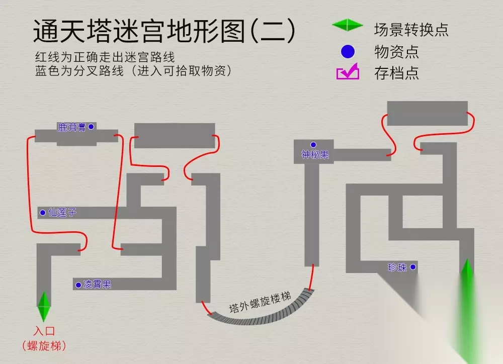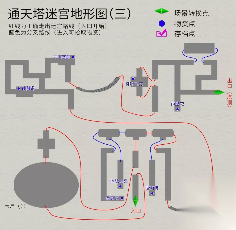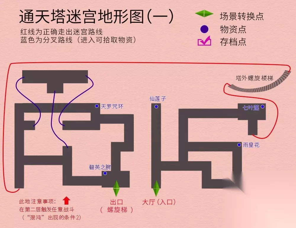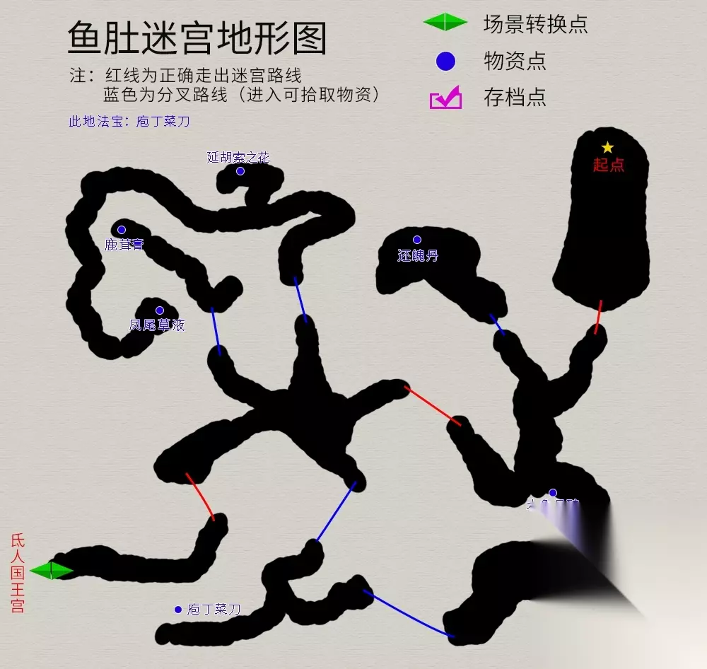 回到主线任务,院中与仙人对话,御剑前往伏魔山,迷宫地图如下(法宝--夜叉肩带):