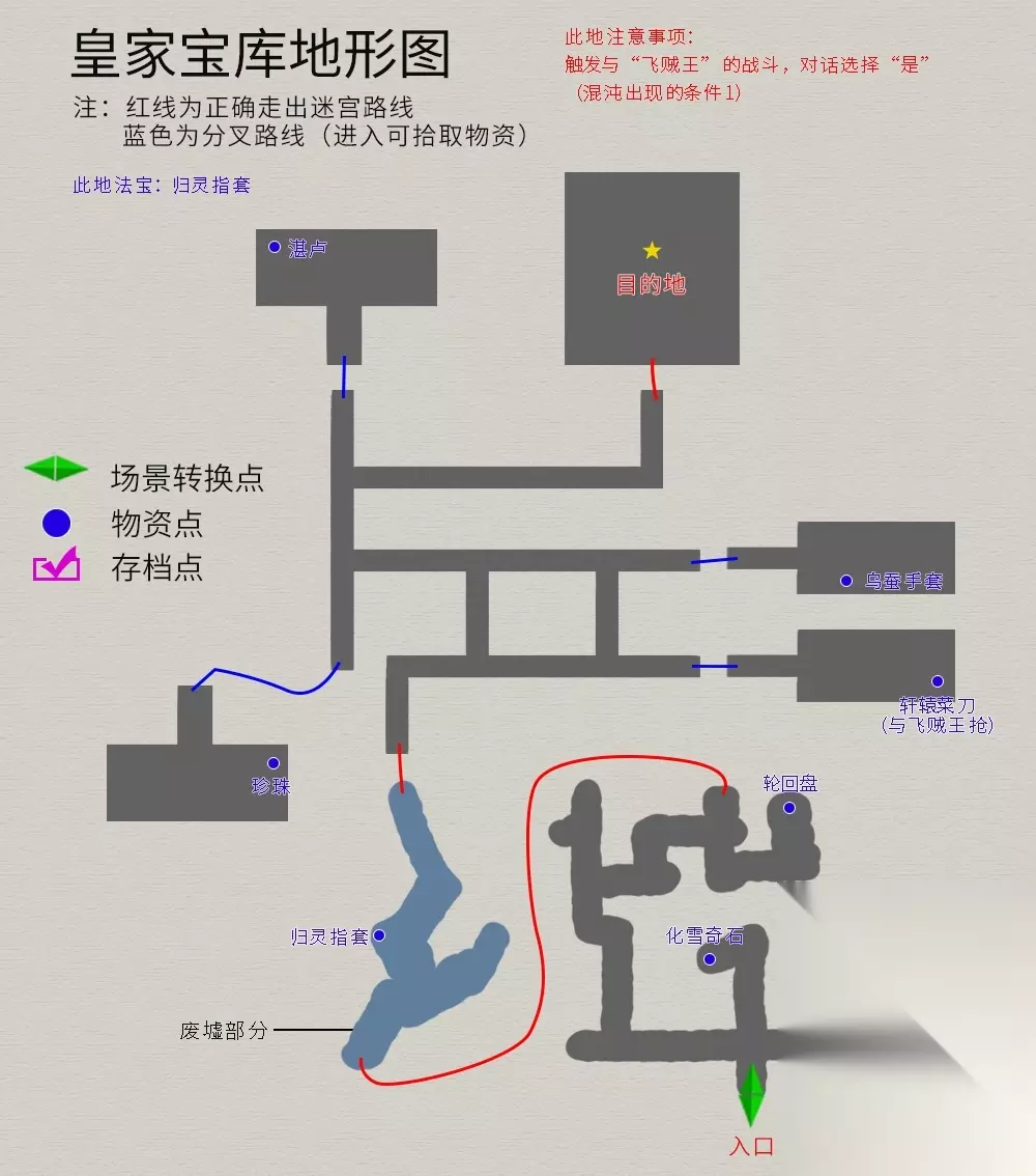 郡主府 流程:师傅已自己从江都返回→与师傅对话→与郡主对话→小雪病倒→利人市药店请大夫→返回郡主府与大夫对话→与郡主对话→前往皇家宝库。 皇家宝库(流程:出来后与郡主会合返回郡主府。此地法宝:归灵指套) 注意事项:触发与“飞贼王”的战斗,对话选择“阻止他”(“混沌”出现的条件1)。