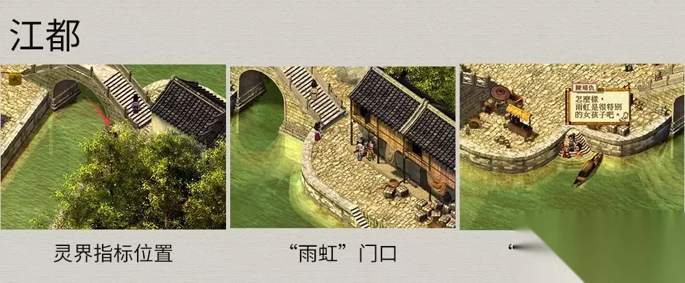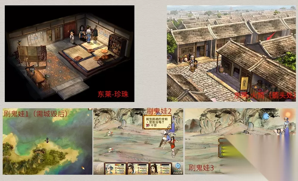 救回师傅→返回然翁居→古月为师傅治疗及为小雪激发潜力→往对弈亭向然翁道谢→再次前往氐人族,得知崆峒印已被宇文大师抢走,又返回然翁居→请仙人保管身上神器→师傅强烈反对并大怒→对弈亭劝解师傅→离开天外村前往寻找神器,仙界与人界传送阵开启。 江都城 流程:与客栈门前“朱四”对话→进客栈休息→出客栈后与桥上“陆仲铠”对话→回客栈找师傅→前往杏山(师傅未同行)。 此地注意事项:在野外大地图若触发两只“火光兽”与“丁格”的战斗,对话选择“不救他”(“饕餮”出现的条件2)。 支线任务: 1.与灵界指标宝箱附近的狄三对话得知船上遗落了好东西,往下方的树丛走可自动获得云生碧焰巾*1。 2.与桥上的翠鬟对话→提供珍珠,完成奖励“七合龙抓花*1”(云生碧焰巾X1附近的树丛可找到珍珠)。 3.DOMO⑥罗国成:与民宅内两女子对话(桥头对面),“雨虹”说想要出去闯闯→与河边阶梯罗国成对话,答应帮其找女友→回屋内与雨虹对话→雨虹出门后返回与罗国成对话。