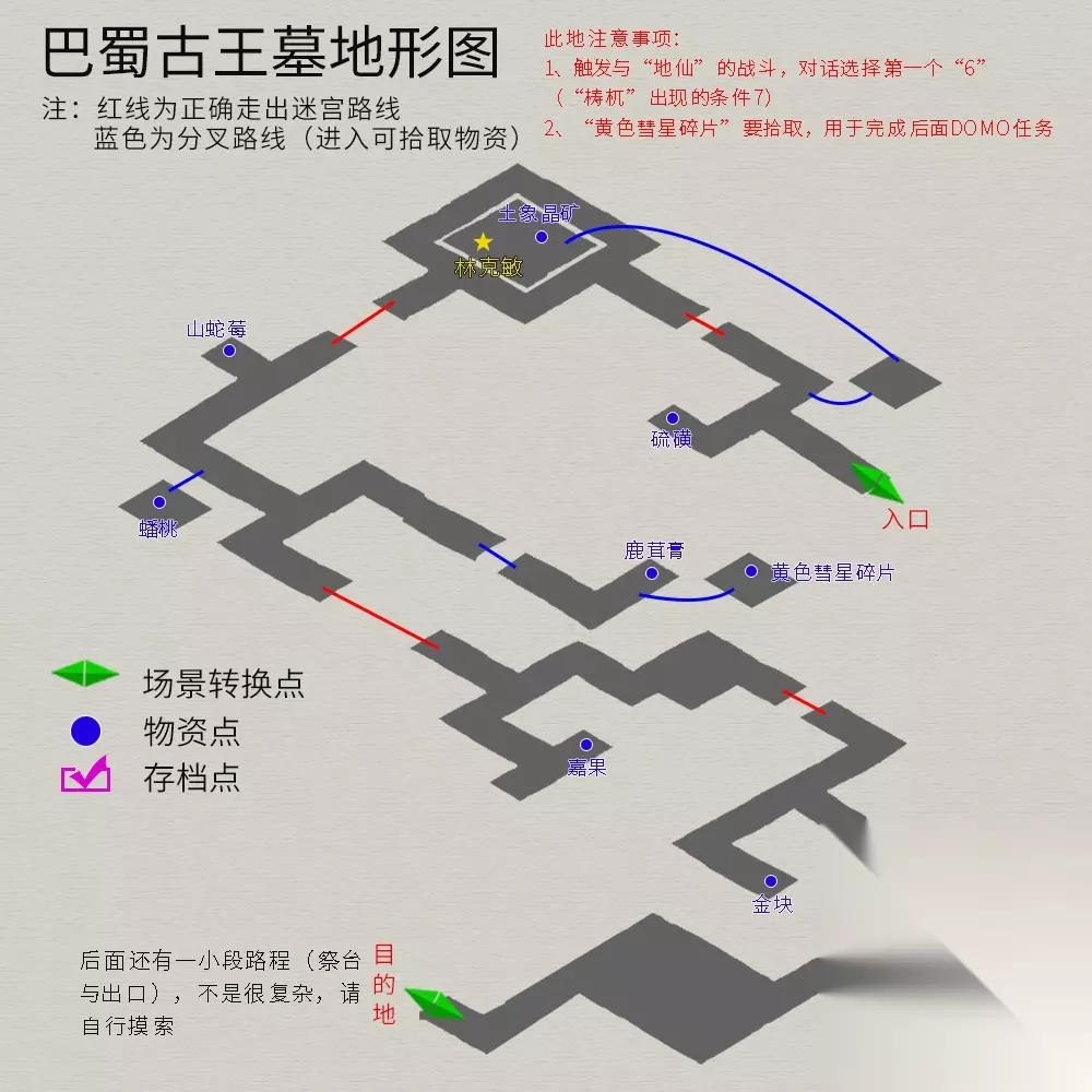 大兴(江都接上师傅后,通过武关来到大兴城,直接前往独孤郡主府。) 流程:郡主府与郡主对话→太师府门前与“刘元”对话→返回郡主府→前往长沙城外隋营→与宇文太师交手→师傅被擒→仙山求救→返回隋营拿神器换师傅→将师傅留在江都养伤→返回郡主府→郡主再告知“女娲石”信息→前往古巴蜀王墓。 支线任务 1.猜谜:城门口三姑六婆→兰律阁贾老板→谜题/答案与奖励(1/海灯-石敢神石*1,2/风筝-三叶雪桑果*1,3/算盘-河车丸*1,4/爆竹-三滴材质片)。不可逆向答题,如直接选了第4题,前面三题便无法再答。 2.擂台宝藏:城门口“小头”→点利人市擂台“天下第一”→25次后选“结束”,完成奖励“活灵芝*1”。 3.寻宝游戏:与长生药房旁的“小靖”对话→依次调查(点击)牌匾(酒肆之招、太师匾额、狗皮膏药、大兴城楼),完成后奖励“糖葫芦*1”。(此时可把“鲍宏修”合成出来) 4.交聘礼:与擂台旁“唐耕武”对话→资助钱*3000→获得“三清符笔”的信息,到洛阳后可去拾取。 5.奸商宝物:与酒店二楼的“令狐雍”对话→得知郡主府有宝物→在郡主府凉亭寻获“绿色彗星碎片*1”。 6.寻亲:与客栈二楼的“长孙燕儿”对话→与旁边的酒客“卢信、唐富”对话→返回与“长孙燕儿”对话,获得奖励“红雀镯*1”。 古巴蜀王墓(流程:王墓出来后返回郡主府) 注意事项: 1.宝箱中的“黄色彗星碎片”不能错过(完成DOMO任务“吴东兴”的必要物品)。 2.触发与“地仙”的战斗,对话选择第一个“6”(“梼杌”出现的条件7;获取任务物品“蓝色彗星碎片”)。 3.DOMO⑧林克敏:从密道进入与林克敏的宠物战斗(如果前提条件全部满足的话,宠物就是“梼杌”)。