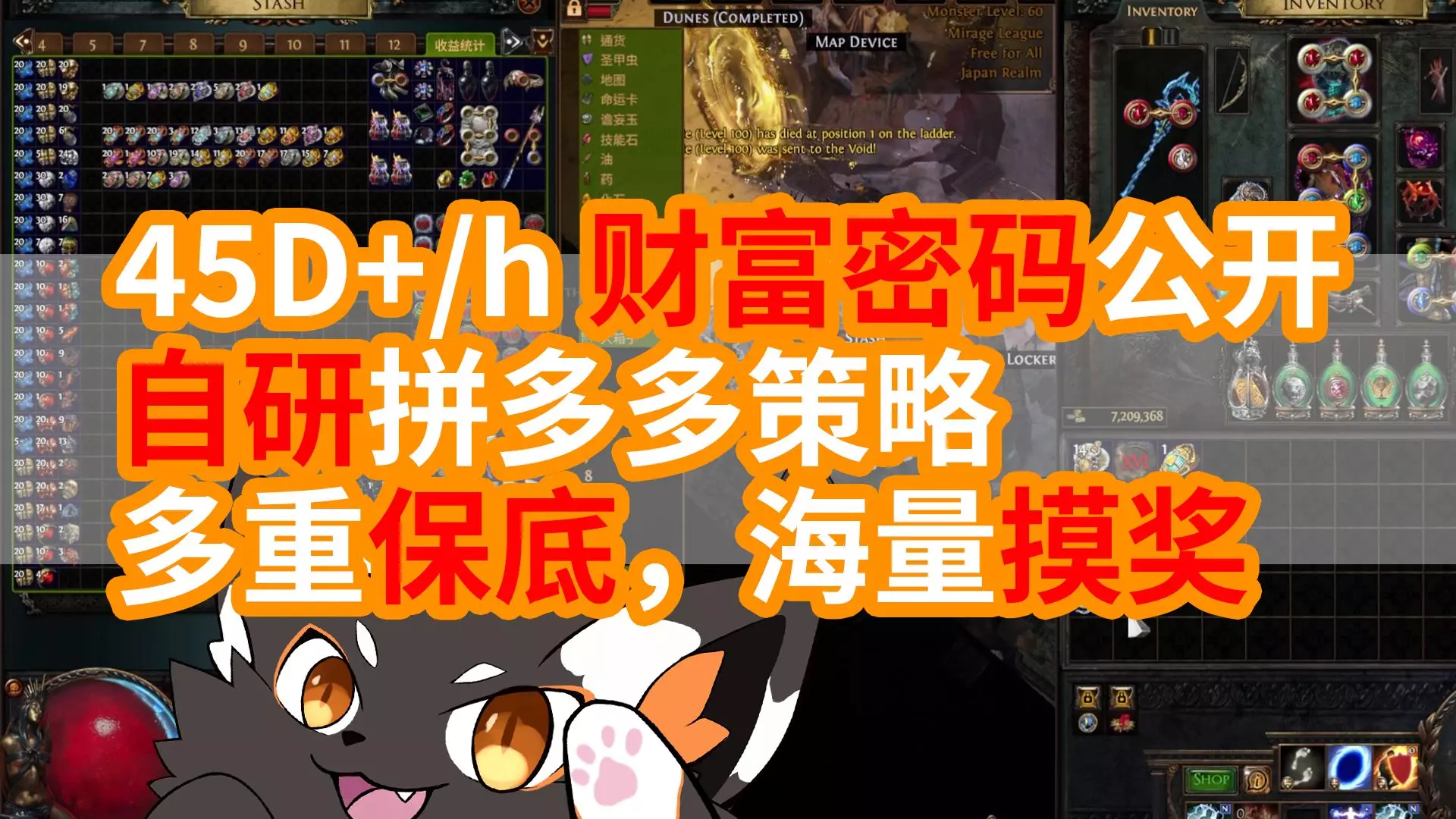 这是一期《流放之路》的实况解说,盘点了游戏玩法里的高价值物品,展示了背包内的各类道具,还介绍了地图玩法,其中提到神主手套是价值最贵的物品之一。