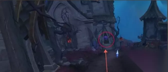 2、到达位置之后,可以看到一个紫色光线的小房子,这里就是黑市; 如图所示就是黑市的入口: