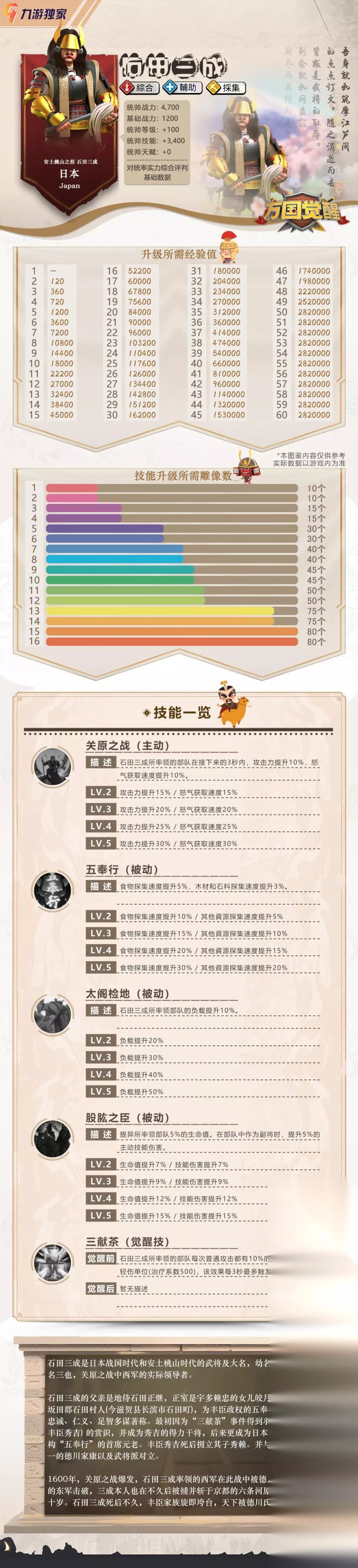 一、石田三成的背景介绍 石田三成是日本战国时期的一位军事将领,在织田信长的时期担任了要职。他是一个非常有才华的人物,懂得文武双全。在游戏中,他的能力也非常强大,是一个非常值得使用的角色。 二、石田三成的基本属性 石田三成的基本属性有攻击、防御、生命值等。在游戏中,我们需要掌握这些属性来更好地发挥他的能力。攻击力可以让他对敌人造成更多的伤害,而防御力和生命值可以让他更好地抵御敌人的攻击。