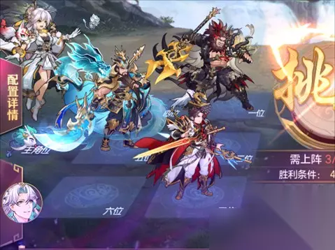 PART05探骊寻珠第三章 探骊寻珠中的BUFF选择是选择普适性较高的BUFF,优先选择斩杀BUFF可以比较有效的降低难度,别的BUFF优先选择全体,若没有全体加成则优先前排BUFF,本章较为简单。 参考社稷值:1400w (凛煜刘备默认赵云羁绊、苍澜关羽默认关平羁绊、弈辰诸葛亮默认黄月英羁绊、武将有专武的默认带专武、命魂武将默认五红)
