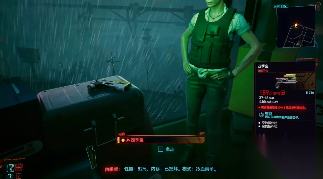 存在一种利用游戏存档机制同时达成保留武器与完成任务的方法。具体操作是在一个安全区域将四季宝丢弃在地面上,然后立即进行快速存档。随后读取该存档,角色会自动执行拾取动作,此时地面上和物品栏中将各存在一把四季宝。玩家可以将其中一把存入仓库,另一把用于交付任务。待任务完成后,再从仓库中取出备份的武器,即可实现既获得任务报酬又永久拥有一把四季宝。四季宝作为一把智能武器,其自动瞄准功能依赖于角色装备特定的义体硬件。玩家必须安装具备智能连接功能的机械义手,例如Tyger爪或更高级的康陶智能义体,才能正常使用其锁定功能。