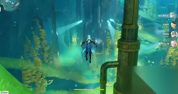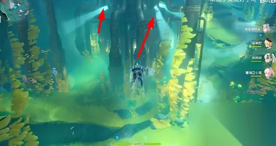 1、在到达梅罗彼得堡中海中的会发现,有出现灯光照射,如下图所示,玩家可以游到灯光的附件。