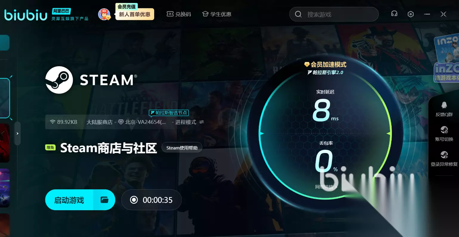 现在还为大家送上了限时白嫖福利!输入【biubiu不掉线】立领72小时,新人注册即送24小时,再加上刚刚填暗号所赠,合计白嫖96小时,整整4天无付费加速。