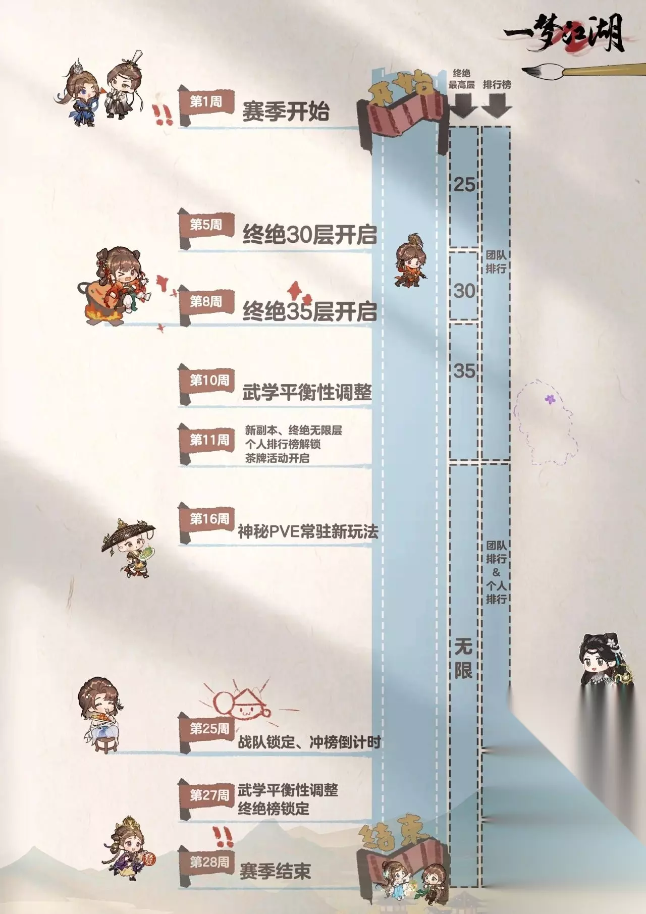 2.副本词缀更新 词缀焕新,周周有惊喜!在新赛季中,我们将推出全新词缀,为副本挑战注入源源不断的新鲜感!副本中的词缀组合每周都会更换一次,保证少侠们的战斗体验常玩常新! 同时,在终绝25+挑战中,我们将保持“重伤”与“溅射”两大经典词缀不变,不再加入其他词缀,让巅峰对决更聚焦硬实力!