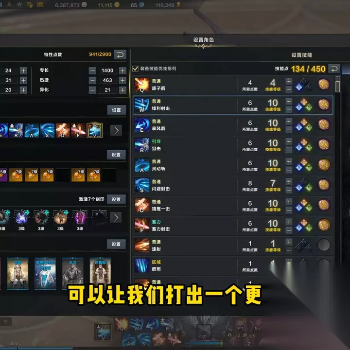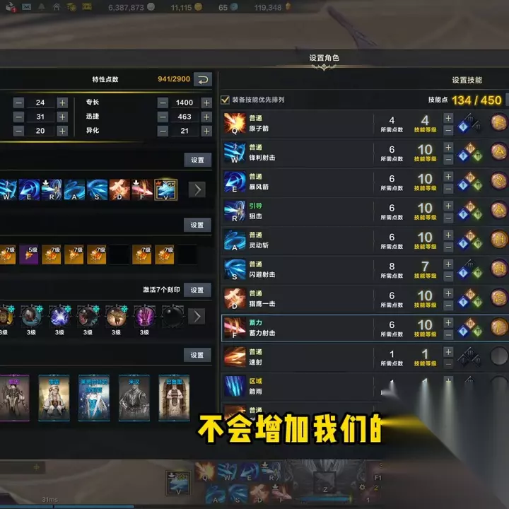 接着,我们来看看技能:三角架的选择。接下来,我们来看看技能:三脚架,以及技能符文。首先,原子箭点到4级就可以了。选择伤害增幅,符文选择是疾行。利用锐利的射击技巧,精准打击敌人的弱点,并利用弱点捕捉技能实现高效输出。 为何要选择弱点压制技能呢?在萌新阶段,我们推荐使用伤害增幅技能来增强原子箭的伤害效果,但现在我们已经对技能有了更深入的了解,不需要再使用伤害增幅技能了。因为原子弹的伤害增幅已经足够覆盖整个战斗过程。我们选择弱点压制技能,与巨浪套的爆伤加成相匹配,可以提高我们的伤害输出。