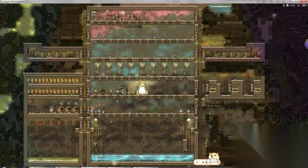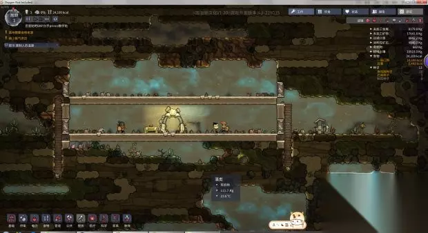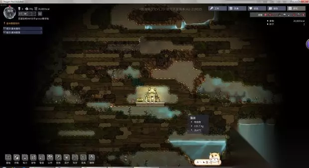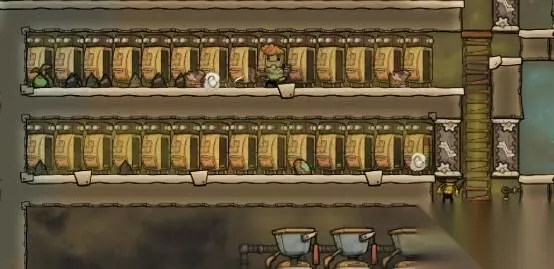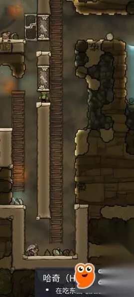 有个格子里面有1200g的氧气有的格子里面有1000g的氧气。如果我们是普通砖的话就会发现小人经常呆的地方氧气密度小不经常呆的地方氧气密度大。所以我们要把砖换成透气的氧气就会被稀释掉氧气密度大的就会通过透气砖跑到氧气密度小的地方。刚才工作间的氧气密度小迫不得已做了制氧器,我们把砖换成透气的之后放床的地方的高密度氧气就跑到工作间的低密度氧气区了。 接下来我们就要用到上面留着的哈奇了,这个小东西会吃东西并且拉出煤炭。煤炭有什么用前期不是很需要,但是我们要知道煤炭是不可再生资源的消耗性矿石,用多少少多少,所以煤炭也很重要。但是哈奇这个小东西可以拉煤炭出来,具体他的生物结构是什么为什么会拉煤炭我们管他呢养着就行了。 现在说一下怎么养哈奇,我们先造一个上下有4格的小空间。