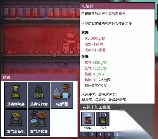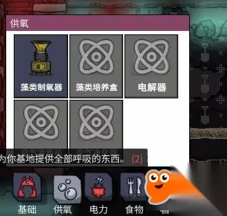 她就可以做出氧气了但是需要往里面不断地填放藻类查看你的藻类资源还有多少看右上角。