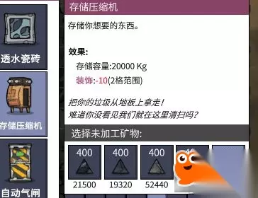 需要有水泵往里面输水。有人用了厕所之后会把污水冲掉所以我们还需要排污水。上图所示,气泵--净水管道--马桶--污水出口--污水管道--排污水口需要注意的是污水管道和净水管道千万不能串联绿色为出水口白色为进水口。 下面我们会发现地上的东西太多了什么材料都在地上放着不仅我们看着不舒服小人看着也不舒服。地上放太多杂物会增加小人的压力,所以我们接下来做一个储物间。