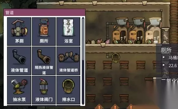 弄得基本都差不多了接下来改善一下生活吧。可能有朋友发现了普通的厕所有使用次数,使用次数够了就需要有人去通厕所,要是在通厕所的时候刚好碰到有别的小人想要上厕所了就会拉在地上。拉在地上的水要用M键擦掉。现在我们改善下厕所换成抽水马桶。