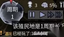 从左到右为暂停游戏(快捷键空格)一倍速度、二倍速度、三倍速度(快捷键TAB)感叹号为红色警报,拉响警报之后小人不会睡觉不会吃饭不顾自己的安慰强制执行你的操作。