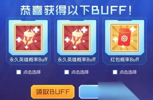 4、获得两个一样的buff还可以合成,变成幸运buff。 5、合成6个幸运buff后,换一个必得buff。