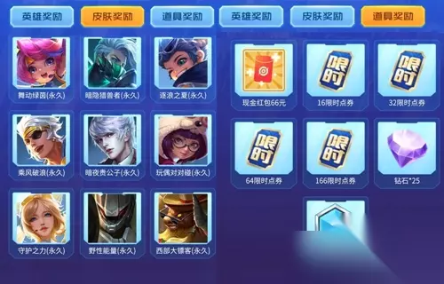 6、必得buff就可以去抽奖了,英雄、皮肤、道具随便抽。 7、这期的扭蛋获得可以白嫖278限时点券,第三期的点券不要错过了。