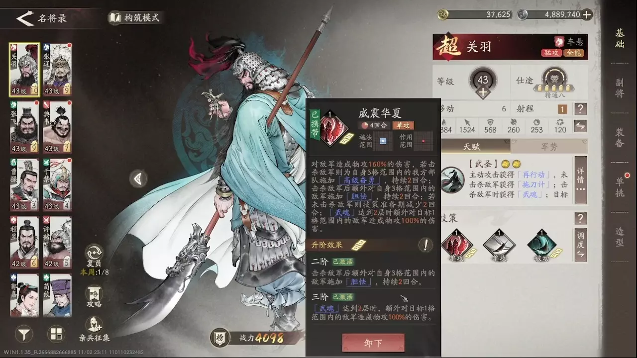 大家好,这里是1区南乡子《书云守岁》公会的剑魄琴心。 这期的主角是我们的武圣关二爷。作为游戏中第一个限定卡池的角色,关羽的强度还是很对得起这个地位。虽然相比于内…