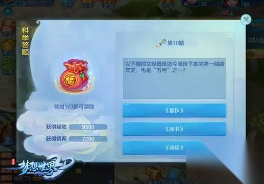 科举答题 【活动时间】每周一至周六17:00-20:00 【活动要求】单人任务 【等级限制】到达20级 【活动介绍】参与科举答题,获得奖励 如转载涉及版权等问题,请作者与我司联系,我司将在第一时间删除或支付稿酬。