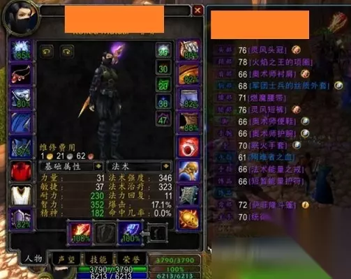 和气定炎爆天赋经常来回洗着用(主要看队伍配置需求),这套完美的契合军装以及5T1的搭配,主要的伤害都来源于瞬发技能,法强的要求不高,主要看中的是耐力,智力,以及暴击的一套天赋,没有寒冰护体,但是依然有极冷冰箱,少了火冲的CD,多了炎爆冲击波,提高了灼烧以及火冲的10%暴击,在中场读条困难的情况下,这个天赋就是名副其实的战歌搅屎棍,不缺爆发,护7打7不缺干扰,在我眼里是上限最高的一套天赋,也在努力学习怎么使用,我推荐装备搭配能到裸装3800血200法伤的可以尝试一下 你也许会说没有冰盾很脆,但在我眼里,冰盾的作用在集火你的情况下没有作用,冰箱就能解决集火,瞬发为主的天赋可以适当牺牲法强提高血量来弥补没有寒冰护体的缺陷,在面对两三个人的情况下有着不读条+双冰箱双冰环双吹风+冲击波的优势,依旧有能力做到反打甚至反杀,有兴趣的可以探讨这个天赋的实用性 PVP装备 我目前元素法的搭配,离我的目标还差个T1衣服(因为经常会穿火箭鞋所以需要T1衣服来凑效果)以及一个MC魔导师或者龙头戒指,3800的无buff血量让我在中场打架与拿旗(换4军装)之间游刃有余