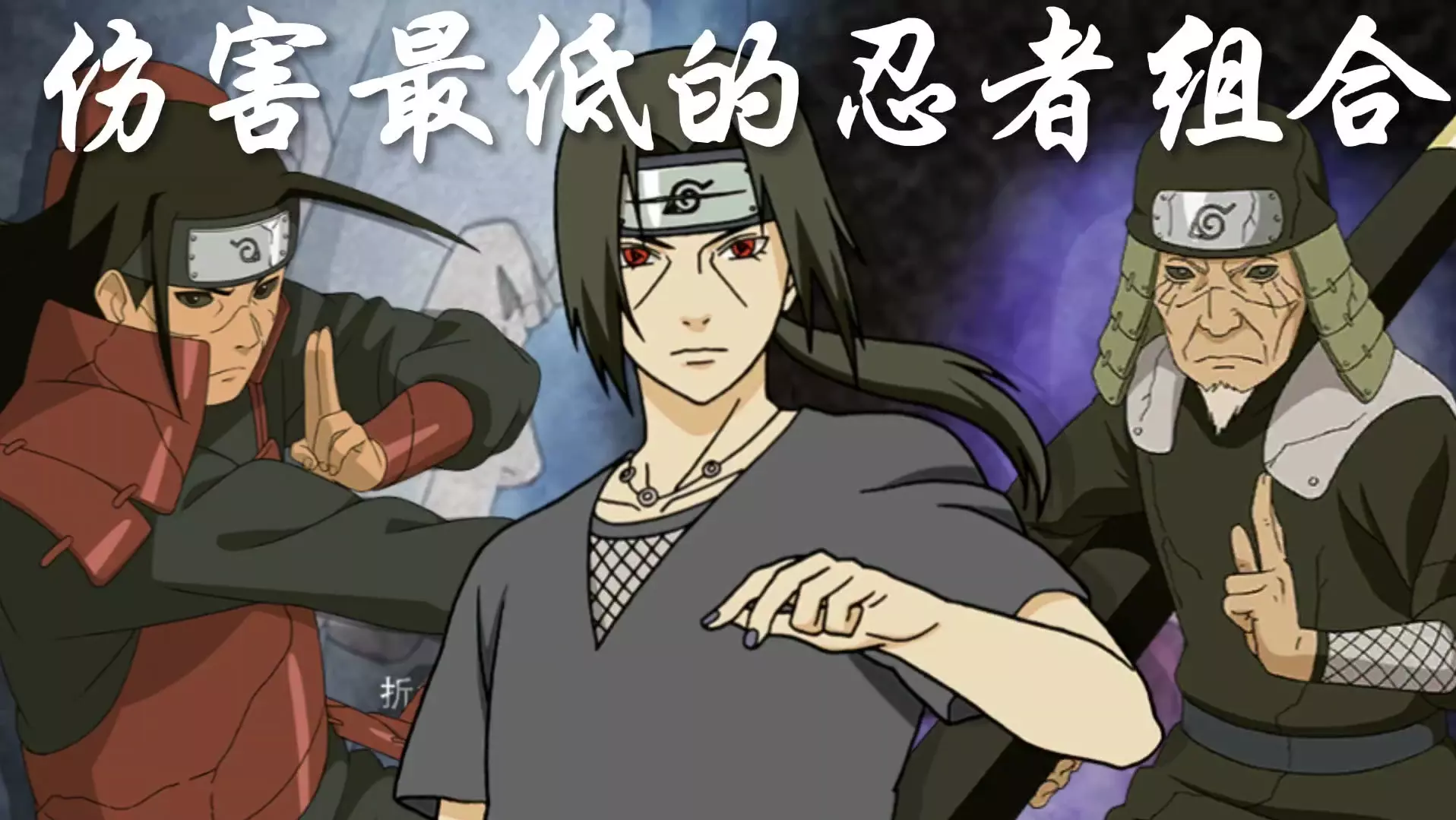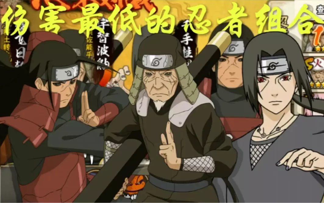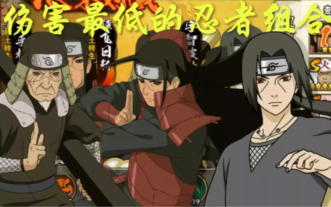 这是火影忍者手游的对战内容,展示了千手柱间[秽土转生]、宇智波鼬[须佐能乎]、猿飞日斩[秽土转生]组成的忍者组合,该组合被称为伤害最低的忍者组合,呈现了其与宇智波斑等忍者的对战画面。