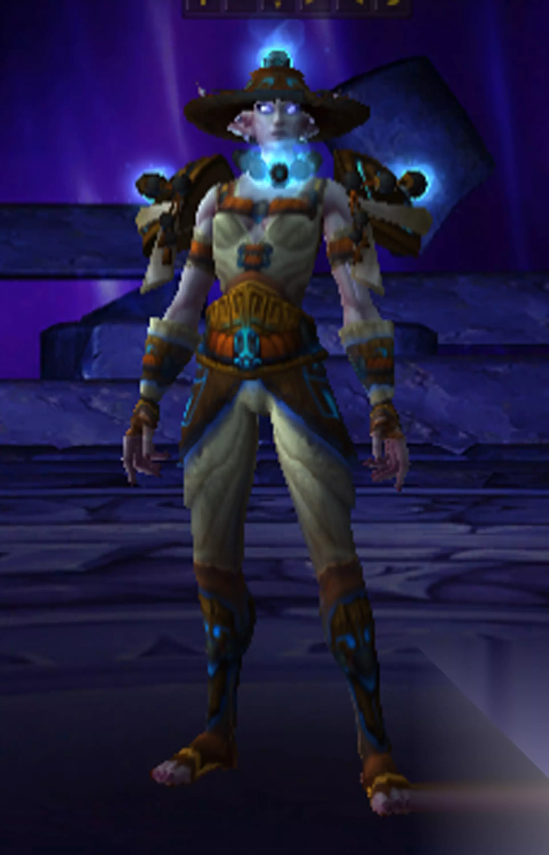 头部:焰鬼头饰 肩膀:焰鬼肩饰 胸部:焰鬼长袍 护腕:焰鬼腕轮 手:焰鬼手套 腰带:焰鬼腰带 腿部:焰鬼马裤 脚:焰鬼长靴 二、迷雾行者套装: